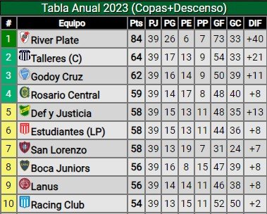 San Lorenzo suma 58 puntos en la tabla anual, la misma cantidad que Estudiantes y Defensa y Justicia pero con una diferencia de gol inferior. Mientra que Boca tiene 56 unidades, las mismas que Lanús, pero con mejor diferencia de gol. Además, Rosario Central, el último entre los puestos de Libertadores, cuanta con 59. Por lo tanto, San Lorenzo y Boca están al alcance del pasaje a la Copa 2024, aunque están obligados a sumar más puntos que sus competidores.