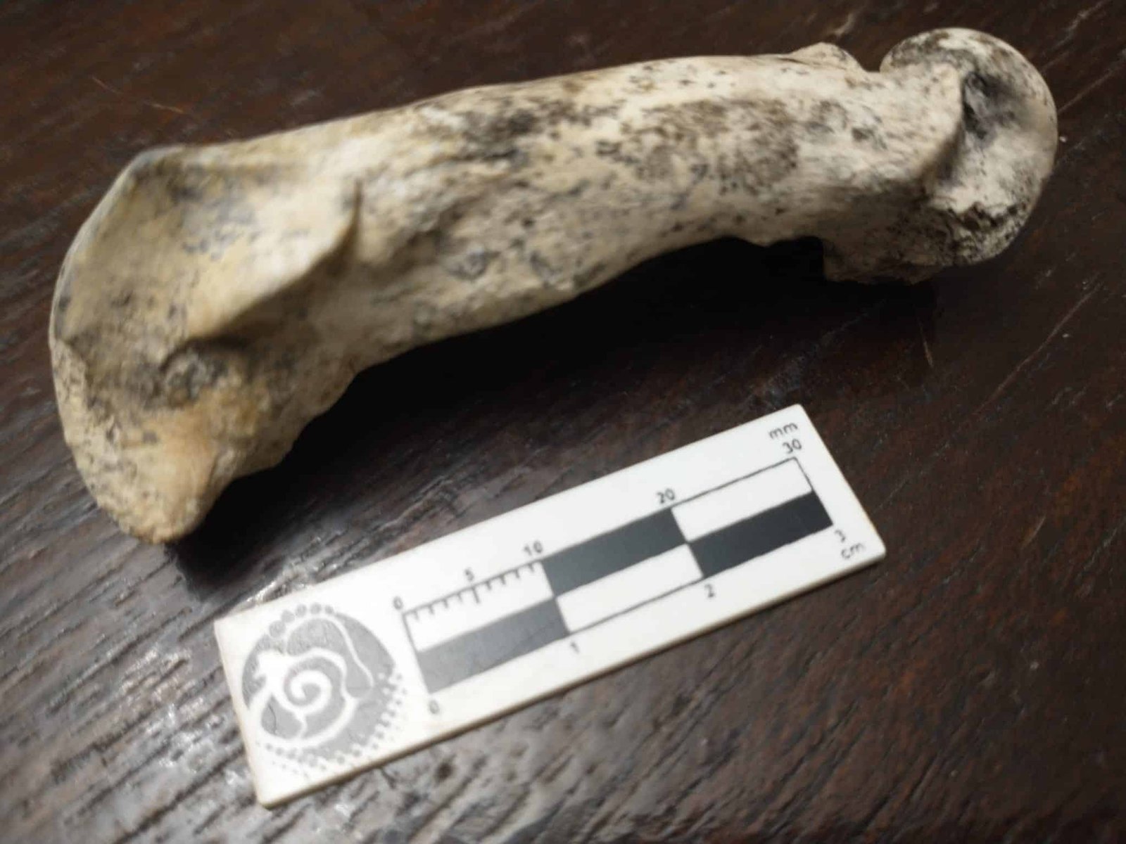 Walter Parra, José Luis Aguilar, Lucía Schvindt, Candela Alcorta, Santiago Ferreyra y Julio Simonini, quienes llevaron a cabo la investigación, hallaron el quinto metatarsiano de la mano izquierda del extinto animal a dos kilómetros del norte de la región, más precisamente en un sector compuesto por barrancas.