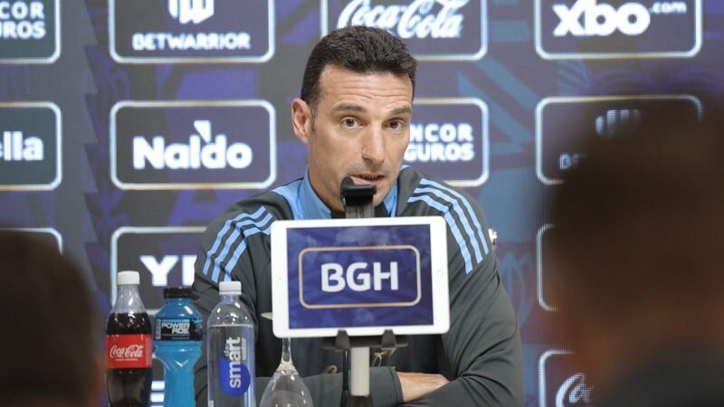 Scaloni en conferencia de prensa.