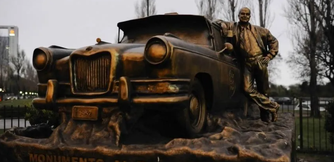 La escultura que rinde homenaje al taxista, en Puerto Madero.