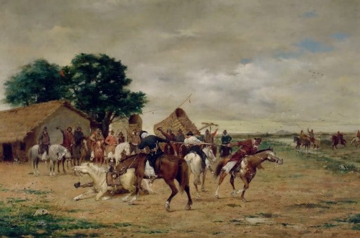 Los comienzos del pato, en un óleo de la época.