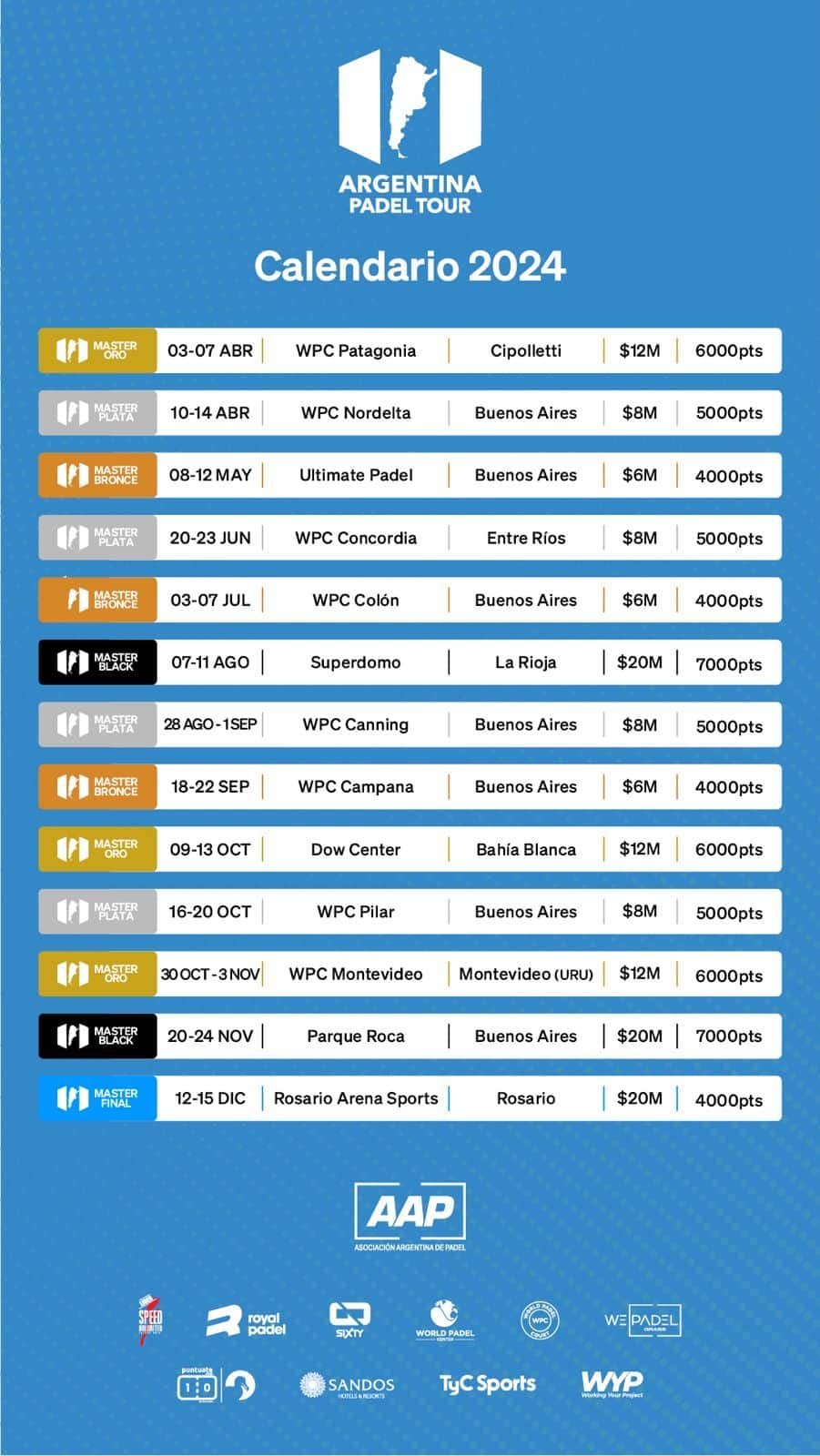 La próxima fecha del Argentina Padel Tour será en el Superdomo de la provincia de La Rioja, del 7 al 11 de Agosto. El Master Black otorgará 7000 puntos para el ranking APT.