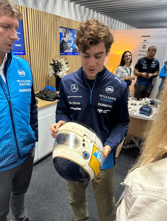 Es que Verónica Ghio, la viuda de Reutemann, logró encontrarse con el piloto argentino de Williams Racing. Allí fue cuando le llevó un casco utilizado por «Lole» en la recordada temporada de 1981, cuando logró el subcampeonato mundial.