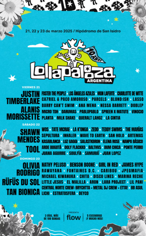 En medio de ese panorama, lo primero en conocerse fueron las fechas. Bajo esa órbita, el Lollapalooza Argentina 2025 se llevará a cabo entre el 21 y el 23 de marzo en el mencionado escenario de la Ciudad Autónoma de Buenos Aires.