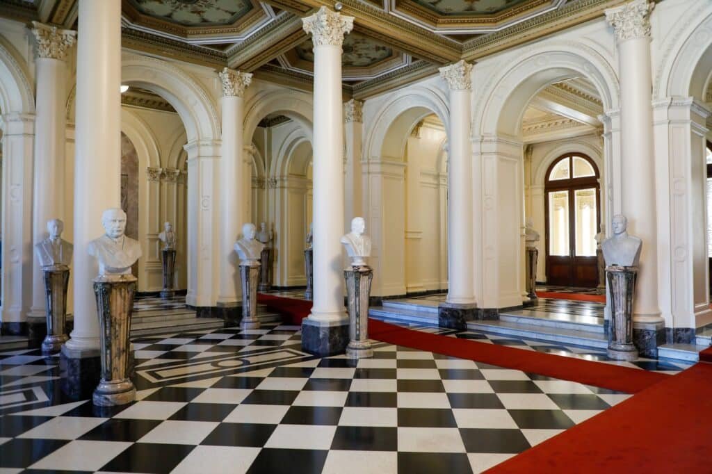 El Salón de los Bustos en la Casa Rosada de Argentina es un espacio histórico y emblemático. Ubicado en la entrada principal que da hacia el lado norte, será el centro de atención el próximo 14 de mayo cuando se coloque el busto de Carlos Menem, quien murió a los 90 años, el 14 de febrero de 2021. Declarada públicamente es la admiración que Javier Milei ha manifestado por la figura de quien fuera dos veces presidente de la Argentina y por eso hubo un primer “homenaje” al colocar un cuadro con su foto en el Salón de los Próceres Argentinos (ex Salón de las Mujeres). Ahora llega el reconocimiento definitivo incorporándolo al hall de la Casa de Gobierno.