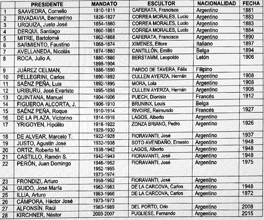 Agregar un nuevo busto a la galería implica una serie de pasos y consideraciones. Primero, una decisión institucional con una comisión como ya mencionamos que evalúa la relevancia histórica y política del presidente que se desea representar. Segundo, tienen que haber pasado al menos dos períodos desde terminado su ultimo mandato, esto garantiza que haya pasado suficiente tiempo desde su presidencia para considerar su legado. Tomada la decision, se elige al escultor y se encarga la escultura. El material tradicional utilizado es el mármol de Carrara y se apoya sobre una columna del mismo material, en donde una placa documenta el o los períodos de Gobierno.