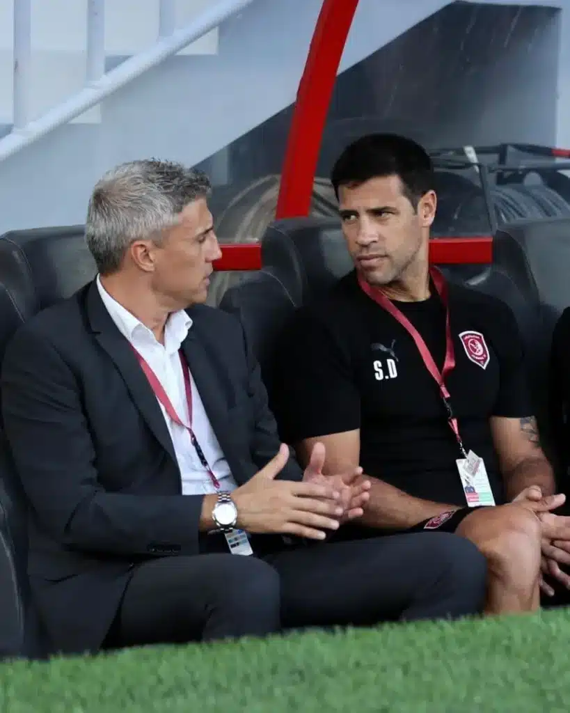 La primera y gran experiencia fue en Qatar, en el Al Duhail, justo en el año del Mundial. Pudo seguir como hincha local la consagración de Messi, al que conocía de chico en Newell’s y alguna vez fue compañero en la Selección de Sabella. Después de un tiempo, entonces, Seba comprobó que el «olor a pasto» lo movilizaba, que era un combustible para su pasión como en los tiempos de pibe que quería ser futbolista. Y que quería comandar su propio cuerpo técnico. Iba a seguir los pasos de su papá, Quique Domínguez, el primer entrenador del capitán argentino en su querida Lepra… «Me di cuenta que me gusta más el campo que el trabajo de oficina. Necesito tener roce con el jugador y con el juego», blanqueó. Se separó en buenos términos de Crespo y esperó durante meses su primera oportunidad. En ese tiempo ratificó algunas ideas propias y leyó otras de entrenadores que respeta al máximo.