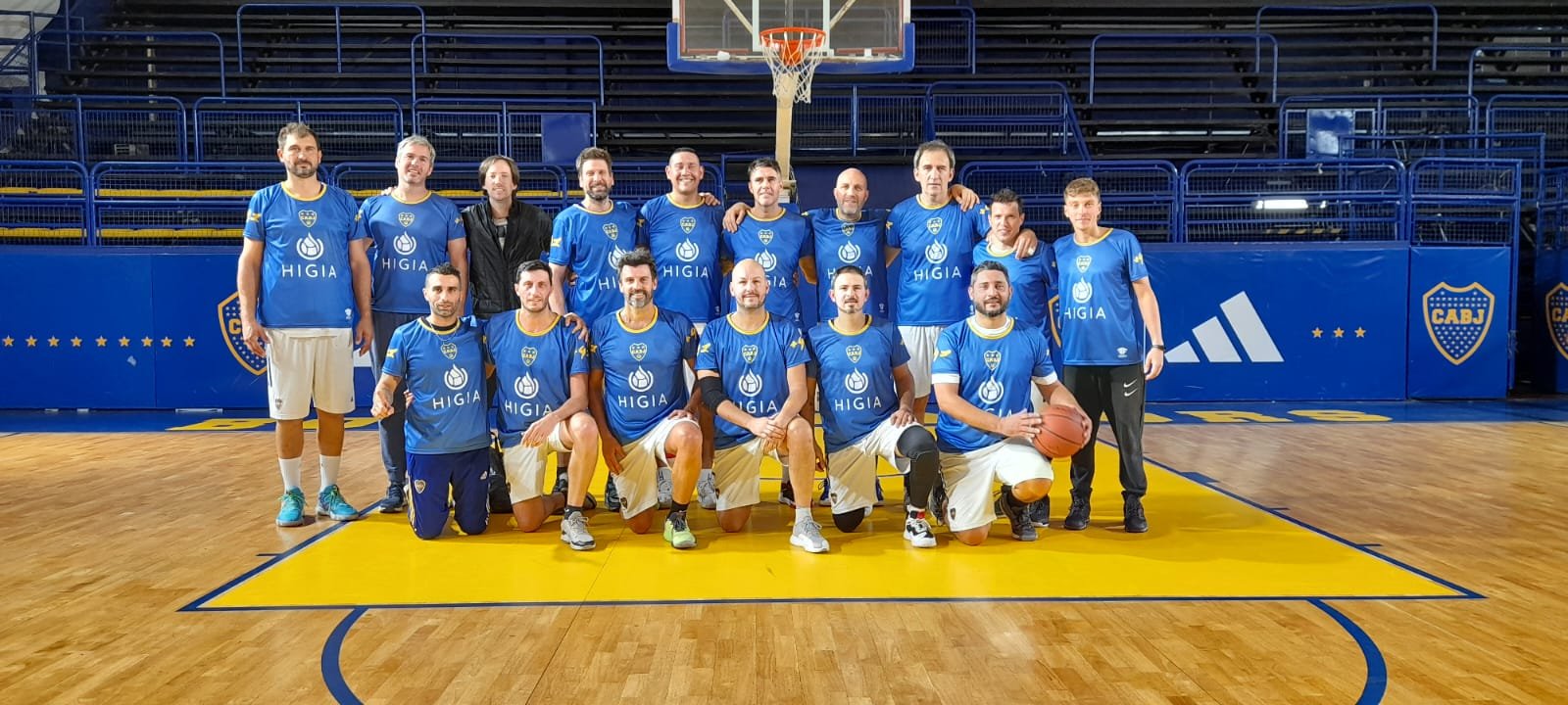 Junto al plantel de Boca (de rodillas, a la izquierda).