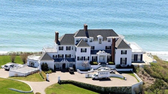 Una de las mansiones en Estados Unidos, con el mar de fondo.