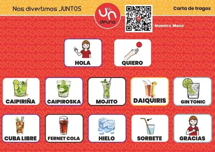 Hay un menú inclusivo que tiene imágenes ilustrativas de los platos para personas con dificultades de comprensión y apretando «play» se escucha la descripción por audio.