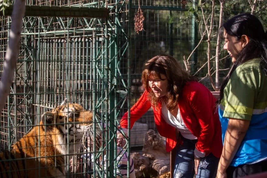 Inés Brizuela y Doria, junto a uno de los tigres que próximamente serán trasladados.
