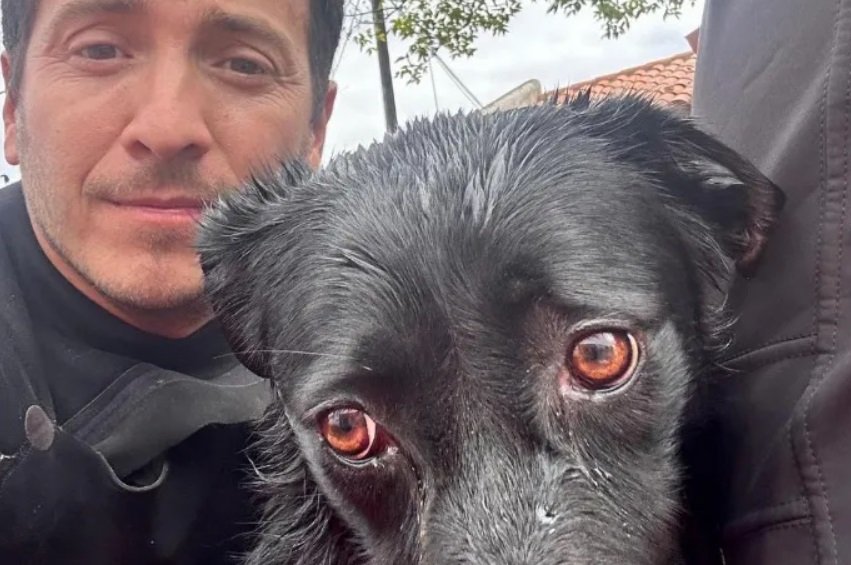 Maximiliano Canziani, sus ojos de emoción y los de un nuevo perrito rescatado en Bahía Blanca.
