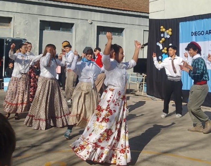 Distintos alumnos de otras escuelas bailaron en medio del anuncio en Máximo Paz.