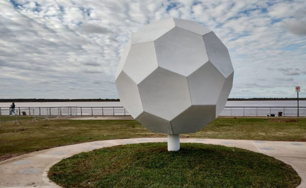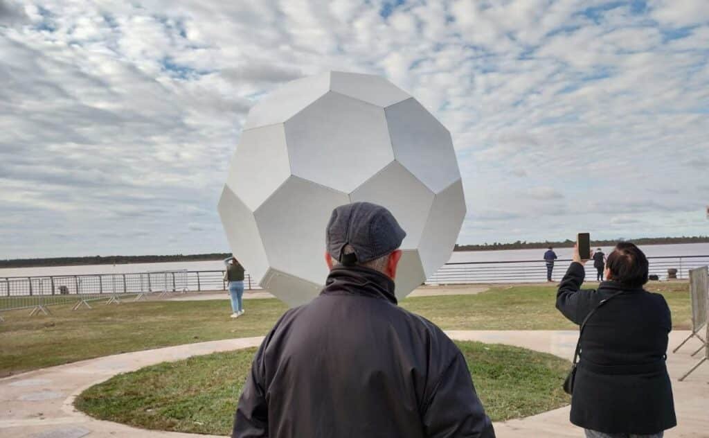 Una pelota gigante en homenaje a mundialistas del fútbol argentino