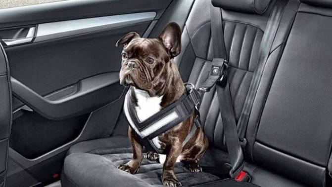 El cinturón adaptado para perros implica el uso de un arnés que se abrocha a la hebilla y se vende en casi todos los pet-shops.